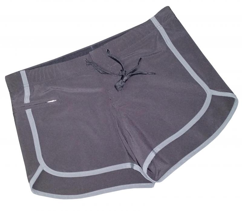 Solid 4 Way Stretch Polyester/Lycra fabric with a neoprene elastic waistband for a super comfortable fit that will be one of your favorite boardshorts. Tie cord front with side zippered pocket, triple needle stitching and a 5" inseam.